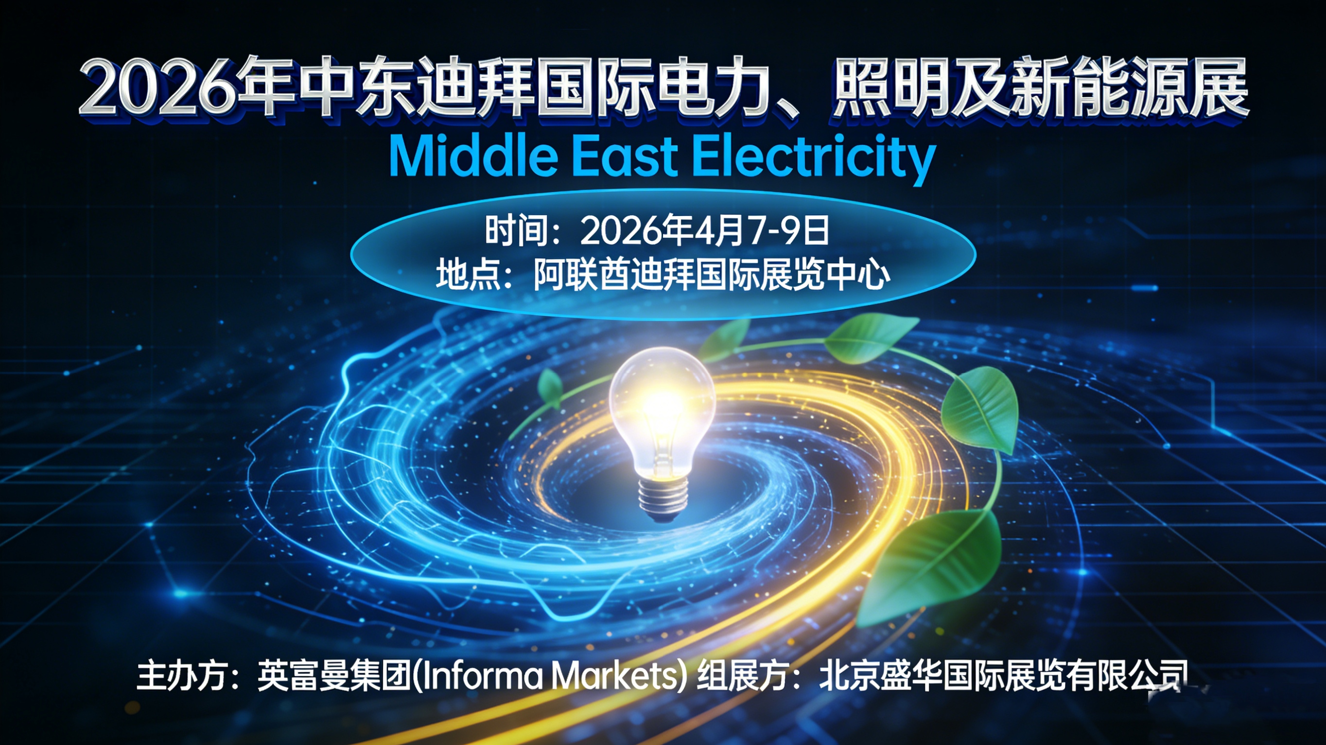 一、展会核心信息展会名称:2026年第50届中东迪拜国际电力、照明及新能源展览会(Middle East Energy Dubai 2026,简称MEE)展会时间:2026年4月7日-9日展会周期:一年一届展会地点:阿联酋迪拜世界贸易中心主办方:英富曼集团(Informa Markets)中区组展单