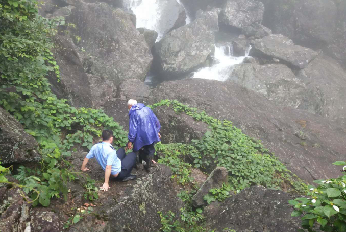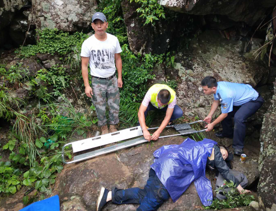 此时,一批热心的村民也赶了过来,加入救援队伍。救援人员开始大声呼叫林某的名字并开始向峡谷里走去。喊出的名字迟迟无人应答,救援人员只好不停地走下去。细雨不停,行进困难,可是救援时间宝贵,救援人员不曾放缓速度,走了大概3公里多的伴山险路,终于在一处石壁下,看到了林某。