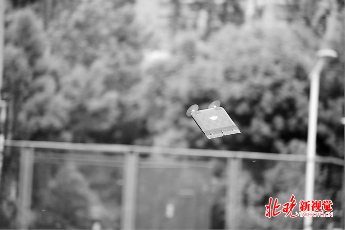 记者最初看到这部无人机时,很难将它和“飞机”联系在一起——--通体黑色的它更像是一册比32开略大、厚度不到两厘米的练习本。只有前部两支5厘米左右的螺旋桨显示出了它的飞行属性。王金瀚说,可别小瞧了这架无人机,它的起飞重量达160克,这意味着载重可以到40克,“如果按照国外军用小微无人机的概念,40克的载重足以搭载各种侦察设备,或者包裹了可碎裂破片的爆炸装置,就像《红海行动》里的无人机一样。”