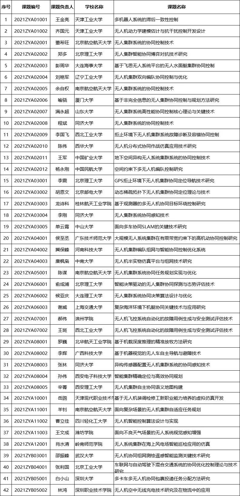 01资助课题名单公示“无人集群协同智能项目”第一批资助课题名单公示*向下滑动查看完整名单
