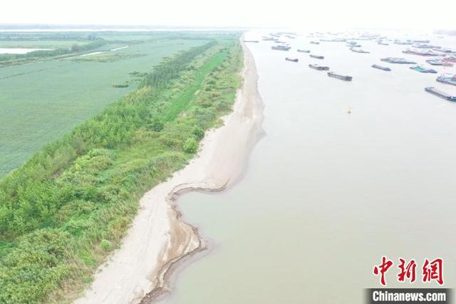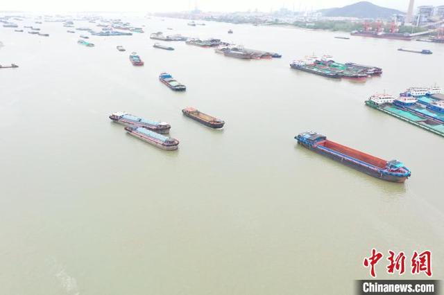 航拍安徽长江马鞍山段船舶通行。 吴子扬 摄