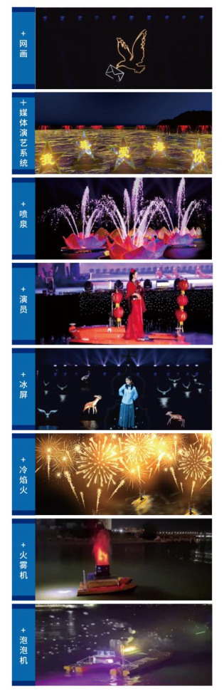 通过搭载冰屏、网画、喷泉等各类演艺设备