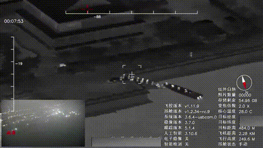 此次测试选择在高原、高寒的复杂环境条件下进行,并伴有大风。在此极限恶劣的环境中,25V无人机在海拔4800米的高原平稳起飞,通过盘旋升高,飞行高度达到7500米(相对高度2700米),此次起飞海拔和飞行高度刷新了国内复合翼无人机飞行纪录,为无人机在极限恶劣环境中执行巡检任务打下坚实基础。常态飞行巡查中,无人机挂载双光吊舱对地面移动目标进行侦察、识别、追踪等。测试中,25V无人机对地面移动车辆、人员进行侦察,飞行中通过手持PAD遥控器可以清晰查看地面车辆及人员的移动情况,30X倍光学变焦可随时拉近查看细节,观察效果良好,机载AI可随时识别锁定移动目标并对其进行追踪。整个测试飞行过程中,虽然伴随8级大风,但是25V无人机展示了其超强的抗风性能,全程飞行姿态完好,稳定安全的完成了此次飞行任务。
