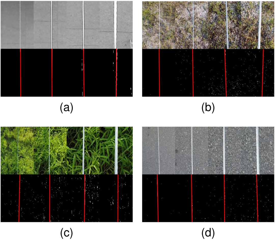 为验证两栖机器人的巡检效果,我们在不同高度放置了三根平行的电力线以模拟真实输电线路,并在地面放置了倾斜的线模拟其他方向的线状物体。