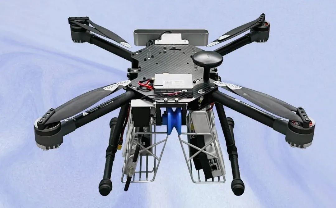 该两栖机器人以P600无人机为基础平台,搭载ZED双目相机,阿木实验室电台和NX板载计算机,实现了自主感知、导航。