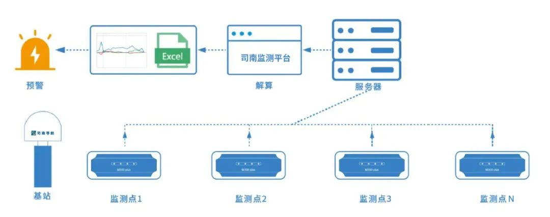 该软件可搭配司南物联网安全监测平台,应用于地质灾害监测、矿山安全监测、水利大坝监测、桥梁安全监测、高危建筑安全监测等领域,能够实现在不同的场景中进行短期或长期位移监测,适用于灾害体、滑坡隐患点、各类水库大坝、尾矿库等的预警和实时监测。同时,可搭配司南导航北斗高精度定位设备及相关传感器,组成全面完整的行业形变监测解决方案。