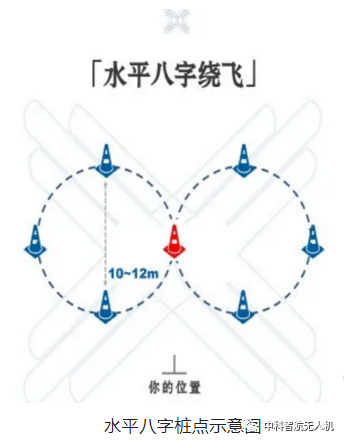 水平8字:依据航空器性能确定标准航线单个圆直径(6 至 15 米),航空器水平位移误差不超过±2米,垂直位移误差不超过±1米,航空器位移无卡顿,航向与标准航线切线夹角不超过30° 。