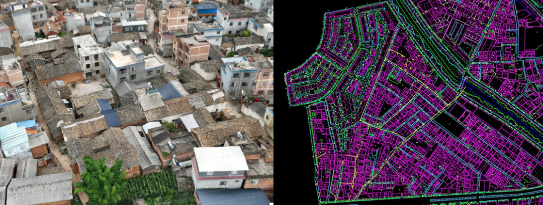 其次,Mavic 3E 卓越的影像画质上也助力了后续数据处理和应用的效率提升。美丽南方景区包含了古村落旅游、水产养殖、高标准农田等丰富地物,采用 Mavic 3E 所生成的实景三维模型画质惊艳,在利用线划图软件进行 DLG 绘制时,可以轻松实现裸眼绘制。