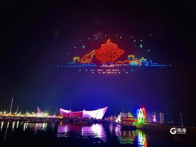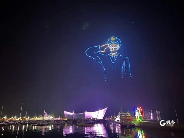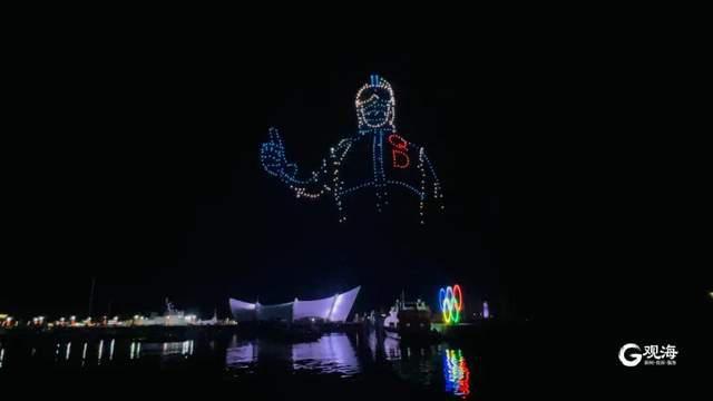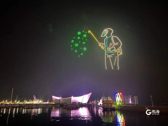 当晚,在奥帆中心活动现场,500架无人机凌空而起,如同银河里的星系,在夜幕下变幻出“五月的风”“大白”“口罩隔绝病毒”“社区工作者”“民警”“市民”及“健康码上的闪光金盾”等不同图案,再次上演“青岛式”星空告白。