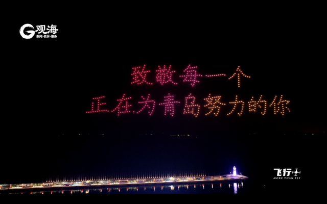 同时,现场也第一次通过无人机把由观海新闻最新制作的战疫MV《守护梦想》的观看二维码飞上夜空,手机扫码即可浏览、收听,青岛夜空秒变互联网流量入口,让正能量成为大流量,用这种别样的方式,记录下岛城这段同心努力的时光。
