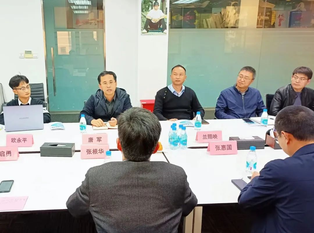 ▲ 张根华副校长(中左)一行与唐军总裁(中右)等人合影