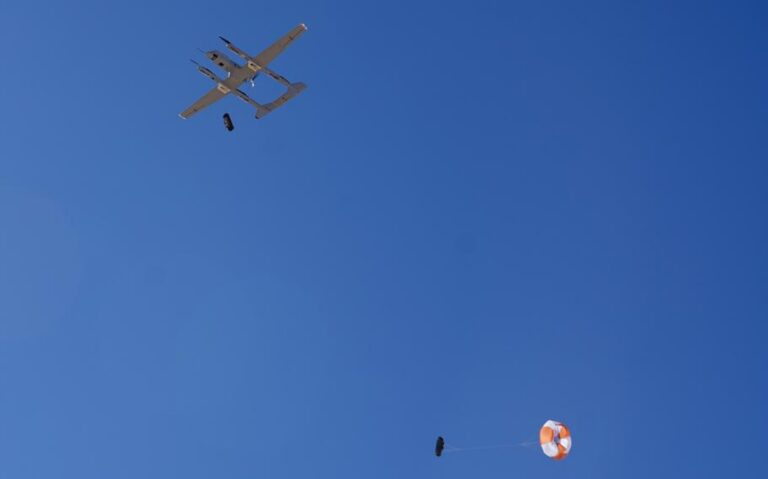 无人机网11月28日报道,据《UAS VISION》消息,美国陆军无人机正在莫哈韦沙漠上空投放模拟血液包裹,努力寻找更好的方法尽快将医疗用品送到受伤的部队。最近几个月,加州欧文堡的士兵们在物资飘落到地面后练习收集无人机货物,这些物资连接在小型橙白色降落伞上。