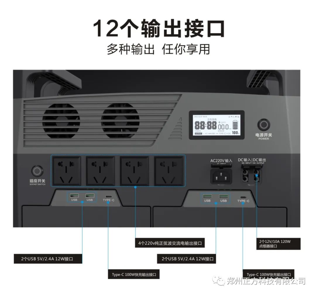 配备了电池管理系统的这款户外便携电源,不用担心放在家里的安全问题,尽可以大胆放心使用,尽情享受体育精神带来的快乐。四:插口多,即插即用,方便快捷这款千乘动力QX3600户外电源和电视机具有12个输出插口,兼容各种家用充电接口和ups和type-c接口,无论是哪种类型的电视插口,电视接收器接口都可以完美兼容,即插即用,非常方便。