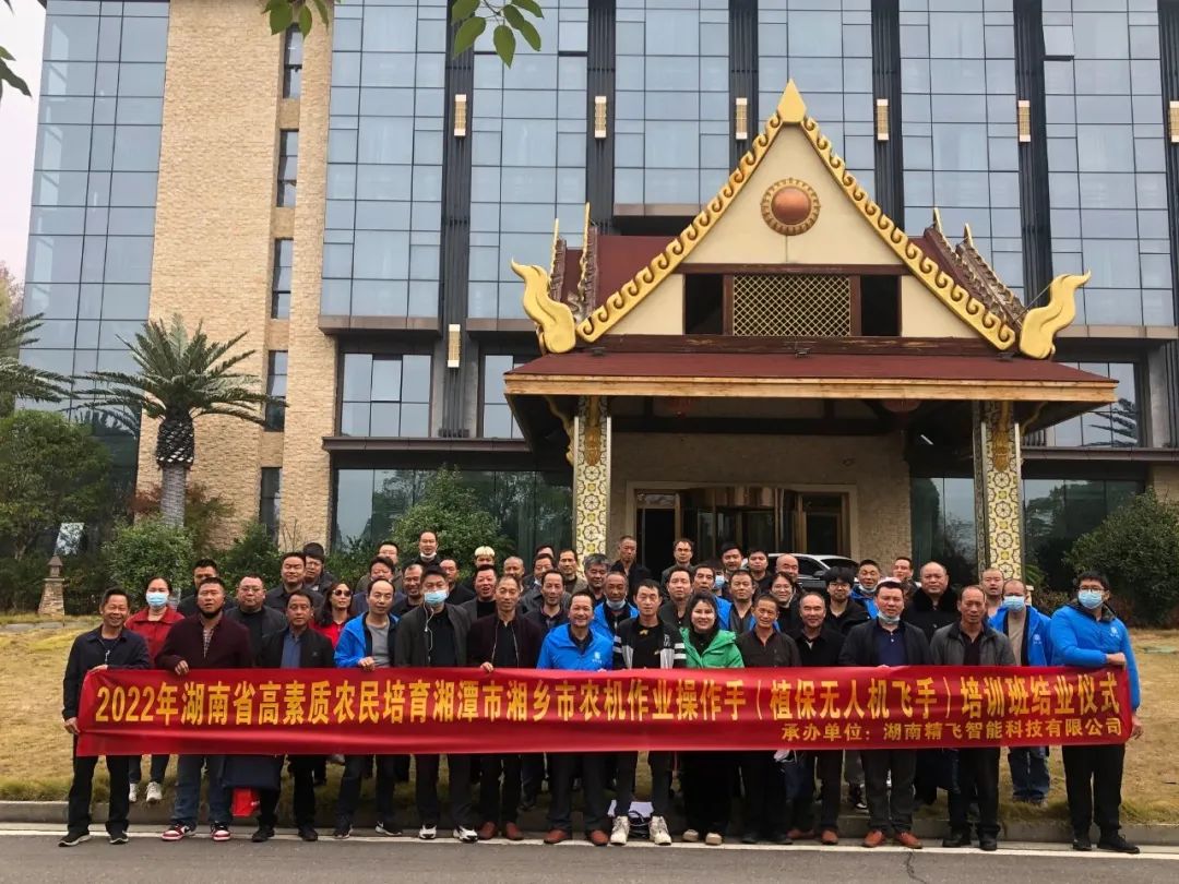 11月20日,2022年湖南省高素质农民培育湘乡市植保无人机飞手培训班顺利结业。此次培训由湘乡市农业农村局主办,湖南精飞集团承办,培训的学员是来自湘乡市15个乡镇的70名高素质农民。