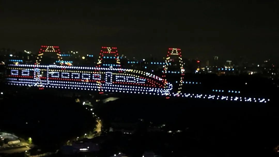 首先展现的是“蛟龙号”载人潜水艇,以昂扬的姿态屹立于夜空,旁边有蓝色星光闪烁,场面唯美而浪漫。随即无人机又灵活走位,以天为幕变幻出“003福建舰”的模样,以广阔的夜空为海洋,肆意驰骋,震撼无比。随后,歼-20、中国天眼、C919、中国空间站、复兴号、祝融号、北斗导航画面依次出现,“问天探海 大国重器”“江苏卫视跨年演唱会”“用奋斗点亮幸福”字样也随之出现。复杂多变的图案绽放夜空,为大家奉上一场精妙绝伦的视觉奇观。随着这条无人机灯光秀视频的发布,#无人机拼出大国重器好燃#微博话题热度飙升,话题阅读量突破500万,该创意视频得到中国青年报、人民网、光明网、中新文娱等主流媒体官方新媒体账号的点赞和转发。上天入海、御风翱翔,这些大国重器彰显了中国的大国实力。12月31日19:30,来江苏卫视2023跨年演唱会,带你一起领略科技与光影的魅力!