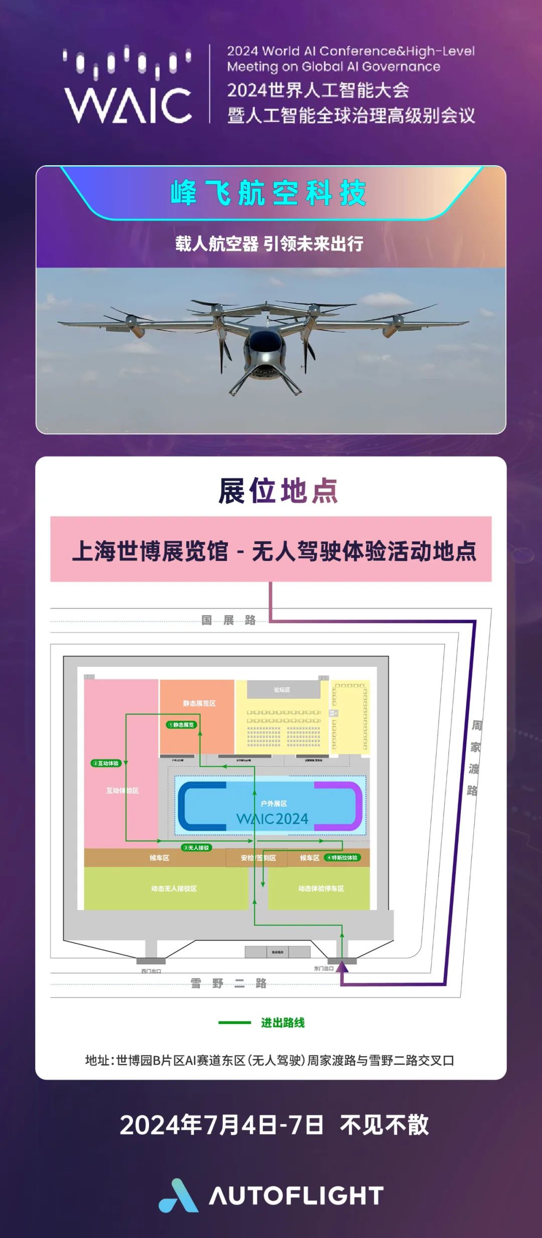7月4日至7日,2024世界人工智能大会(WAIC 2024)将在上海隆重举行。在这次汇聚全球智慧的盛会中,峰飞航空科技将携eVTOL载人航空器盛世龙真机亮相,参观者可近距离感受未来出行魅力。