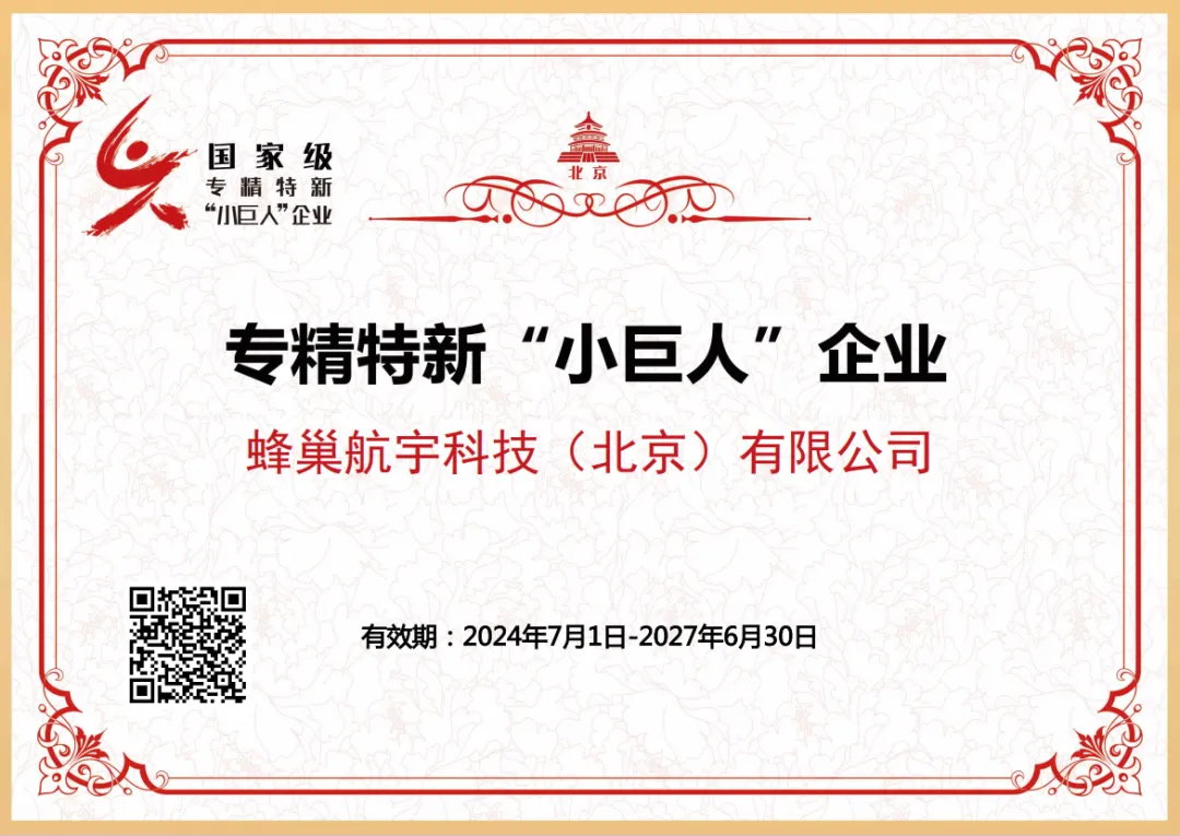 北京市经信局发布《关于北京市第六批专精特新“小巨人”企业和第三批专精特新“小巨人”复核通过企业名单的公示》,蜂巢航宇获评2024年专精特新“小巨人”企业称号。