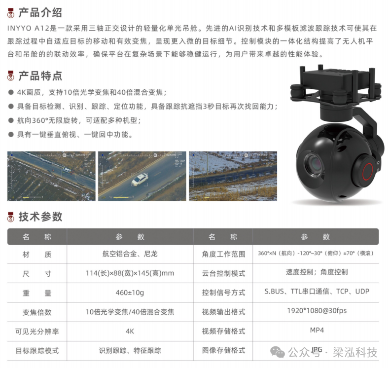 梁泓科技自主研发的自组网照明系留无人机,支持起飞重量10-150kg,悬停高度50-300米。