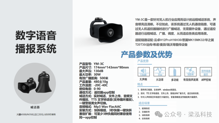 通用型大分贝喊话器,自动降噪,扩音清晰饱满动听,高空巡逻喊话更便捷。