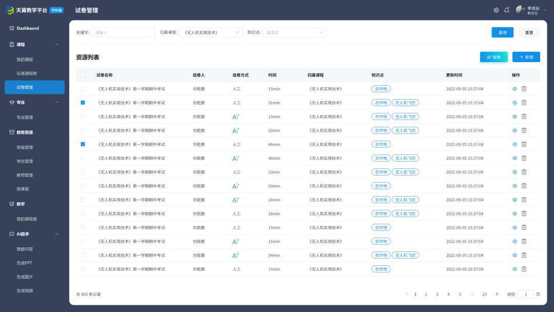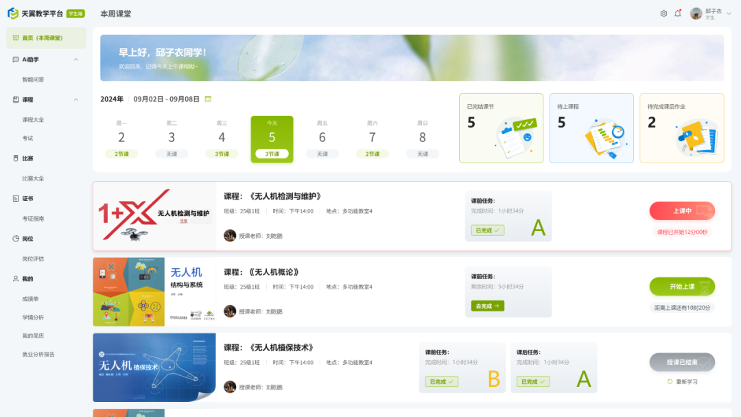 识践-产教科融合教学平台:一款天翼2024年推出的专为无人机教育领域设计的智慧教学平台,集成了教学、实训、考核、评价和就业指导等多项功能。该平台利用先进的AI技术、虚拟仿真技术和无人机教育大模型,为教育机构、教师及学生提供了高效、便捷且个性化的智慧教学解决方案。
