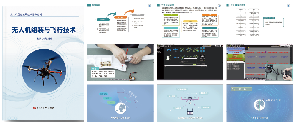 开发无人机基础教学模块、实践教学模块、行业应用模块三类教材及丰富的多媒体教学资源,深度助力院校无人机专业建设: