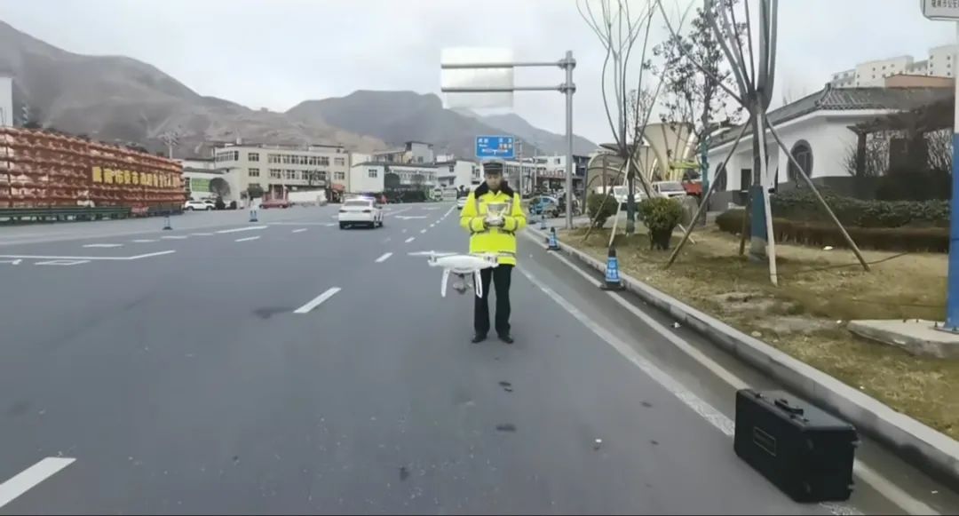 无人机通过实时拍摄画面,将数据传输回支队、大队两级指挥中心,值班民警提前对即将形成的大流量路段进行预警,并及时做出反应。