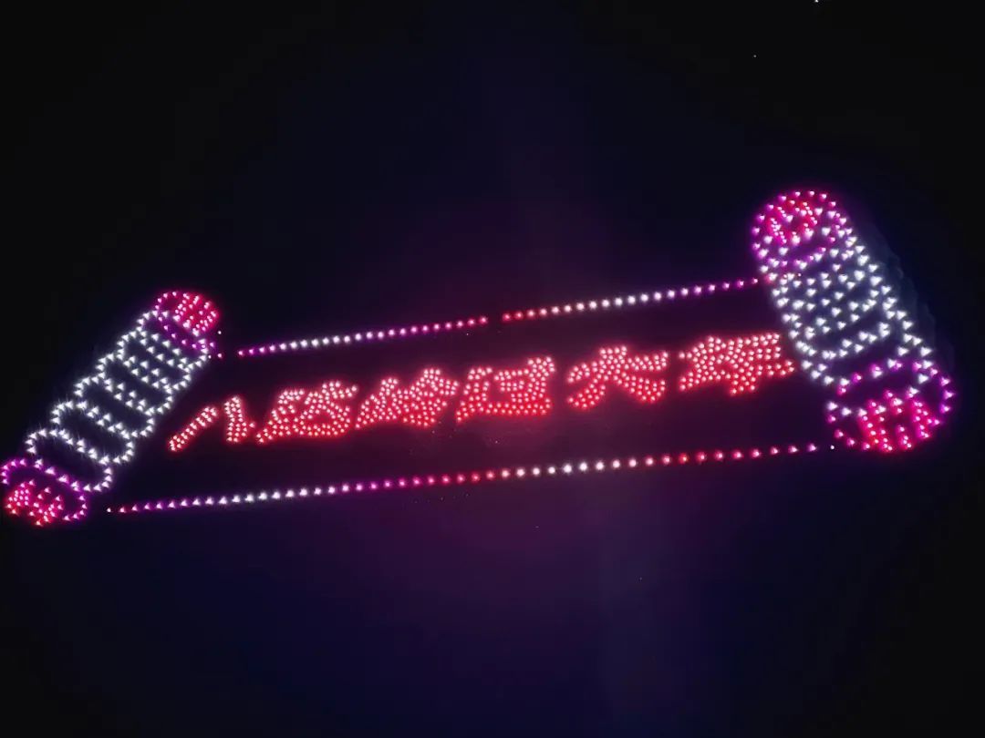 试飞当晚,夜幕如一块巨大的黑色绸缎,轻柔地覆盖了八达岭。就在这时,1000 架无人机组成一群训练有素的夜空精灵,在景区望京广场缓缓升起。它们闪烁着五彩的光芒,在夜空中划出一道道绚丽的轨迹。