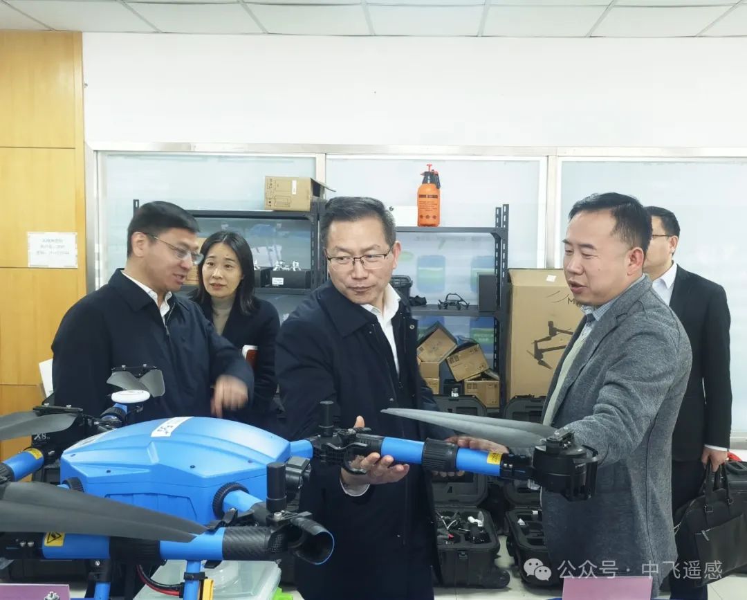 丁立新书记在调研过程中,现场观摩了大飞聚合的无人机产品演示,详细询问了产品在地理测绘、环境监测等实际应用场景中的表现。他对企业在低空遥感技术上取得的成果给予了充分肯定,并强调随着科技的不断进步,低空经济作为新兴产业,拥有巨大的市场潜力和发展空间。