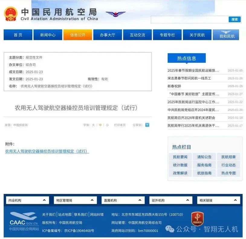 民航局最新发布的《农用无人驾驶航空器操控员培训管理规定》将于2025年1月23日正式落地,事关全国百万农业无人机操作人员。