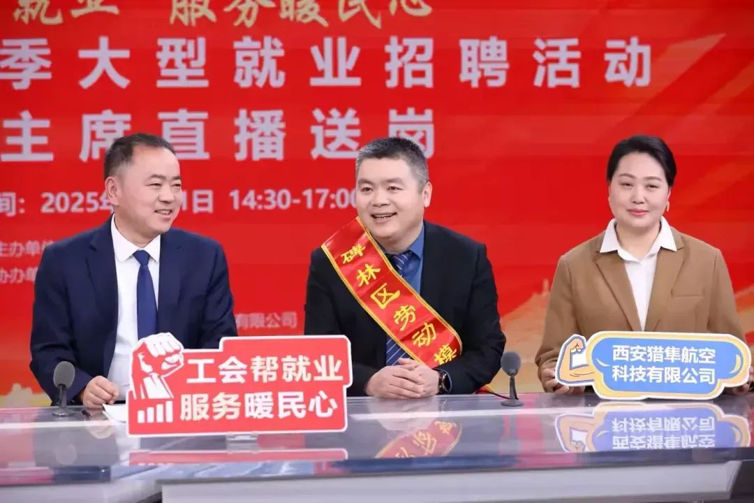 何主席向求职者介绍碑林区就业服务政策及工会帮扶举措,并与劳动模范、企业代表展开深入交流。活动通过“岗位推介+企业展示+在线答疑”的云端互动模式,西安猎隼航空科技有限公司董事长赵永峰结合自身职业经历及企业情况、从薪资结构、晋升机制、团队氛围等角度与求职者“零距离”对话,使求职者在短时间内对用人企业有了全方位的了解。直播间还通过短视频展示猎隼航空的企业工作环境,实时解答“技能培训”“福利补贴”等热点问题,吸引了数千名求职者在线观看、指尖求职。