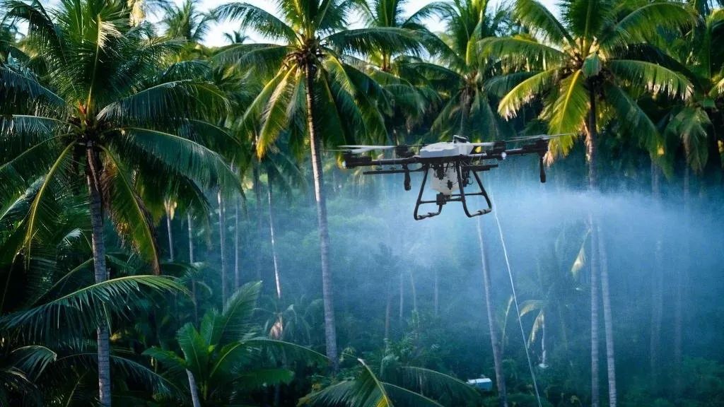 3月2日印媒报道,针对泰米尔纳德邦西部约200万棵椰树遭白粉虱侵袭的严重问题,安那大学启动创新防治项目。该项目采用轩孚油混无人机,通过高速风扇清除椰树叶面泥垢后,精准喷洒含天然樟脑成分的液体,突破传统防治低效困局。