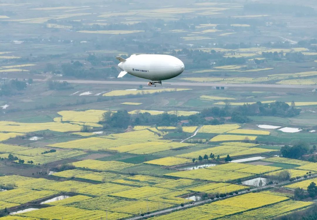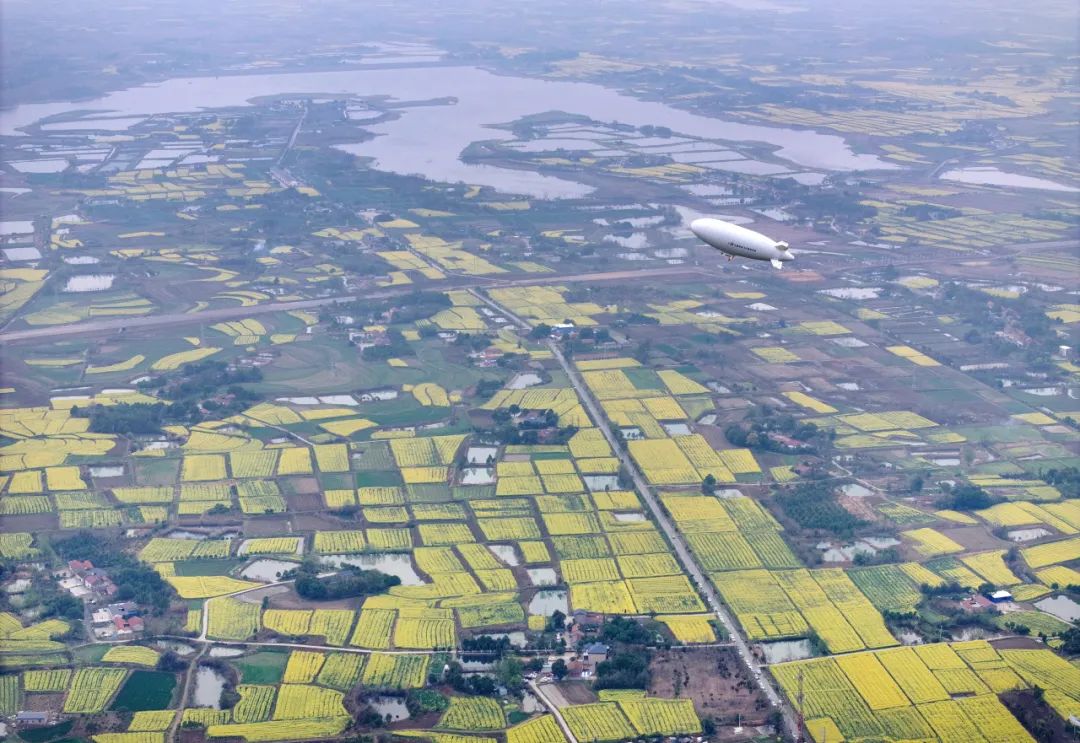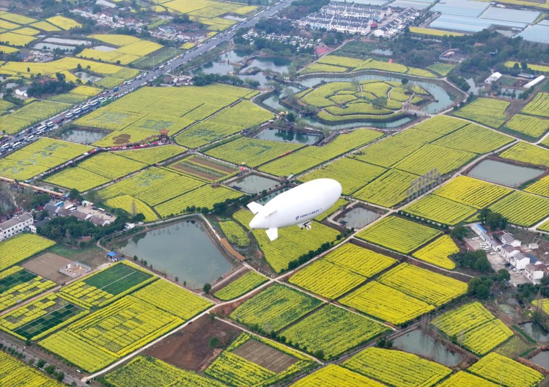 3月23日,在2025年湖北省油菜花节开幕式上,由中国航空工业集团特飞所自主研发的“祥云”AS700载人飞艇首次亮相江汉平原油菜花海,以科技赋能农业文旅新场景,立体展现低空经济与乡村振兴的深度融合。