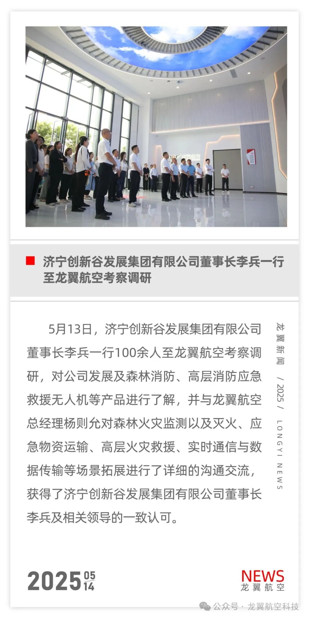 关于山东龙翼航空科技有限公司进入企业商铺山东龙翼航空科技有限公司位于济宁高新区接庄街道办事处远兴路3号,其中公司主要经营范围是:无人航空器系统开发、销售;自动化设备、机电设备系统集成与销售;电子产品的开发、销售;碳纤维制品的设计、销售;货物及技术的进出口业务;航空技术、航空器材的研发;航拍服务。