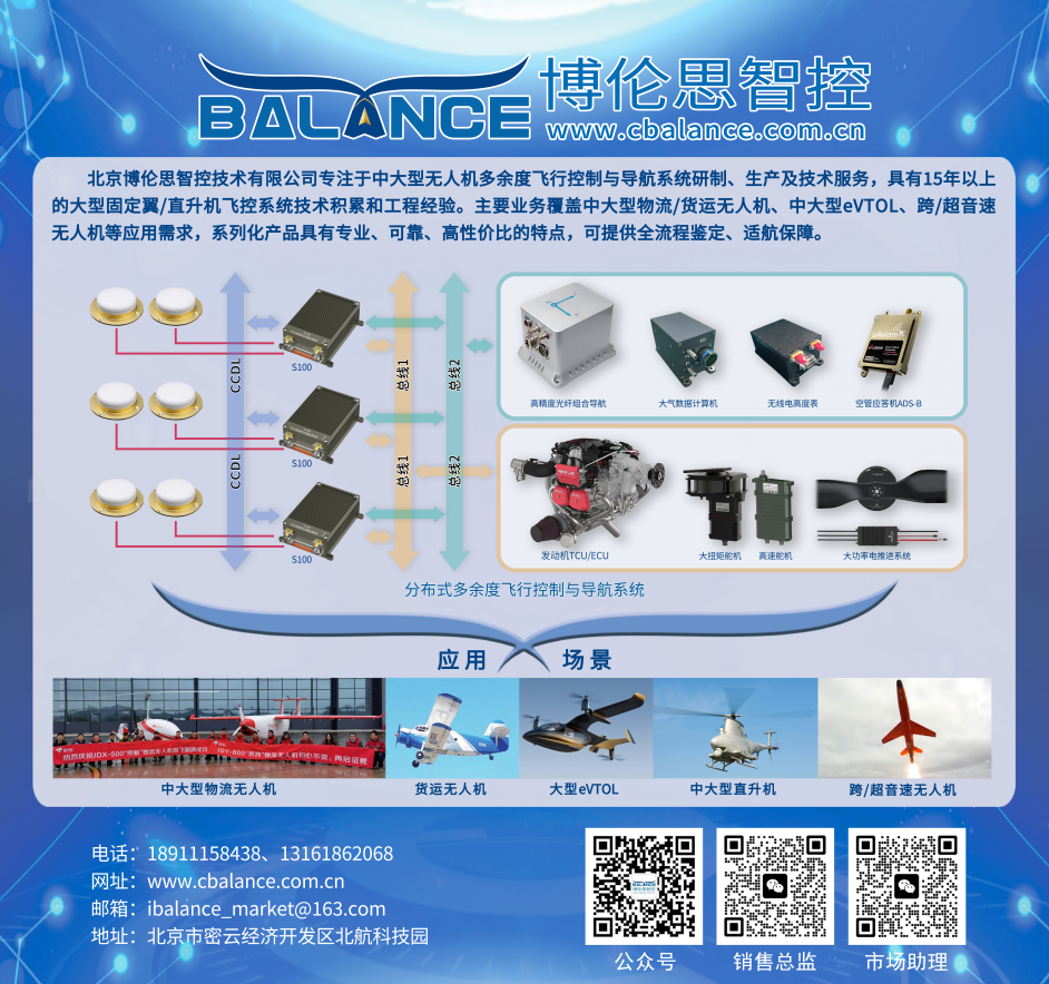 01 【首发惊爆价】1999元/套!“飞入人心、价格厚道” 影飞科技·KFC-GCS300地面站系统重磅发布 多频段可选:800MHz/1.4GHz/2.4GHz,全地形环境稳定通信,无惧复杂干扰环境;远距传输能力>10KM:山地、无人区等复杂工况也能轻松驾驭。【详情】 02 SAR成像雷达|突破光学局限,全天候、全天时的智能侦察与监测解决方案 这一方案由紫燕无人直升机与SAR成像雷达构成,其中SAR成像雷达包含雷达主机和地面控制终端。雷达主机作为SAR成像雷达的核心单元,采用一体化结构,集成了二维全相控阵天线、高精度 IMU、综合电子设备、图传数传和实时成像系统,通过快拆结构即可轻松挂载到紫燕无人直升机上,配合专用地面软件,无需SAR专业背景即可独立使用。【详情】 03 博伦思智控丨扬帆启航 北京博伦思智控技术有限公司是专门从事中大型无人机多余度飞行控制与导航系统研制、生产及技术服务的高科技企业。核心成员毕业于北京航空航天大学、北京理工大学、哈尔滨工业大学、哈尔滨工程大学、南京航空航天大学、香港科技大学等知名高校,在飞行控制领域具有15年以上的技术积累和工程实践,深度参与多项中大型固定翼无人机及共轴双旋翼无人直升机系统研发,积累了丰富的型号研制、鉴定、适航工作经验。【详情】 04 祝贺卓翼智能军博会圆满收官 作为行业领先的工业及特种无人系统供应商,北京卓翼智能科技有限公司(以下简称“卓翼智能”)携其全链路自主可控技术矩阵强势登陆军博会核心展区(T013),以视频展示、实景演练等多种形式,全方位呈现了其国产化、智能化的行业领先解决方案。【详情】 05 亿航智能携手中交四航院与中交信科,共筑海洋及运河等低空基础设施 全球领先的城市空中交通(UAM)科技企业亿航智能宣布与中交第四航务工程勘察设计院有限公司(以下简称 “中交四航院”)、中国交通信息科技集团有限公司(以下简称 “中交信科”)签署战略合作协议,三方明确将聚焦六大核心领域开展深度合作:低空经济基础设施规划与标准体系建设;海洋低空经济创新模式研究;国家级低空旅游示范区建设;空中运河智能物流体系构建;低空经济服务综合体开发;以及“一带一路”低空经济国际合作网络搭建。三方将共同探索低空经济领域的创新合作模式,推动低空经济产业高质量发展,打造具有国际竞争力的低空经济产业生态。【详情】