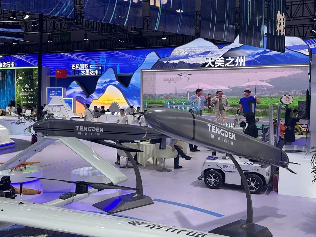 达州展区则重点展示了TS系列无人机系统,包括可空中投放的TS10和TS20两款机型。这些产品续航时间长、任务半径大、抗干扰能力强,可执行航空防务、广域巡查等任务。