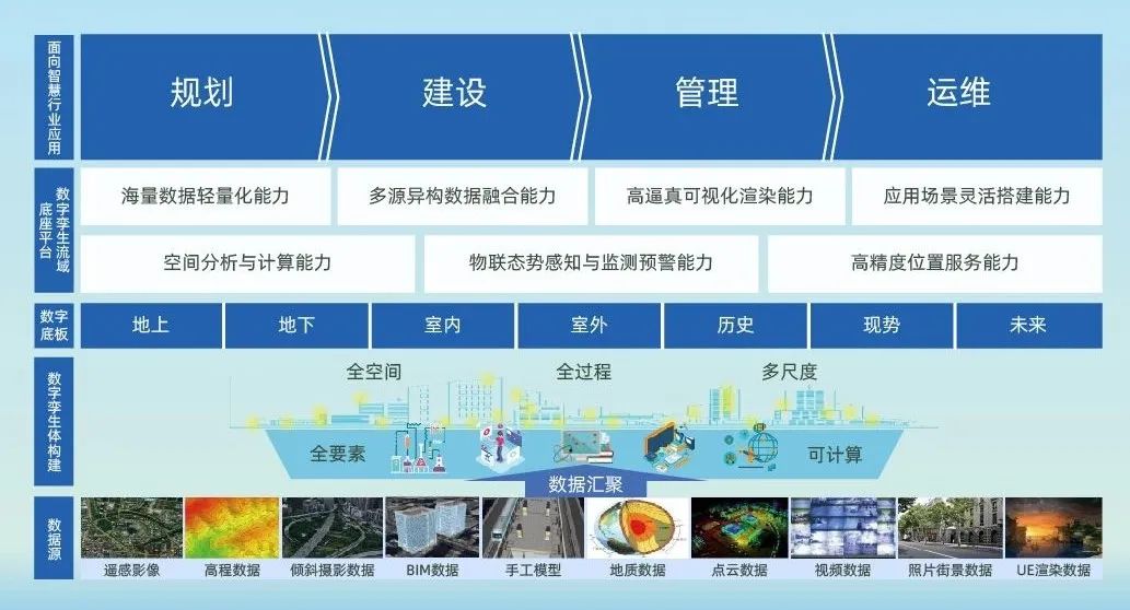 依托北斗立体感知能力、全空间数字孪生建模能力与数字孪生平台的技术项目积累,从多源数据监测与处理、数字孪生底板平台构建、孪生应用赋能智慧水利等三方面入手,将时空信息技术与水利业务深度融合,提供针对性的数字孪生解决方案,为水利水资源建设任务的高效管理和精准决策提供信息化支撑。