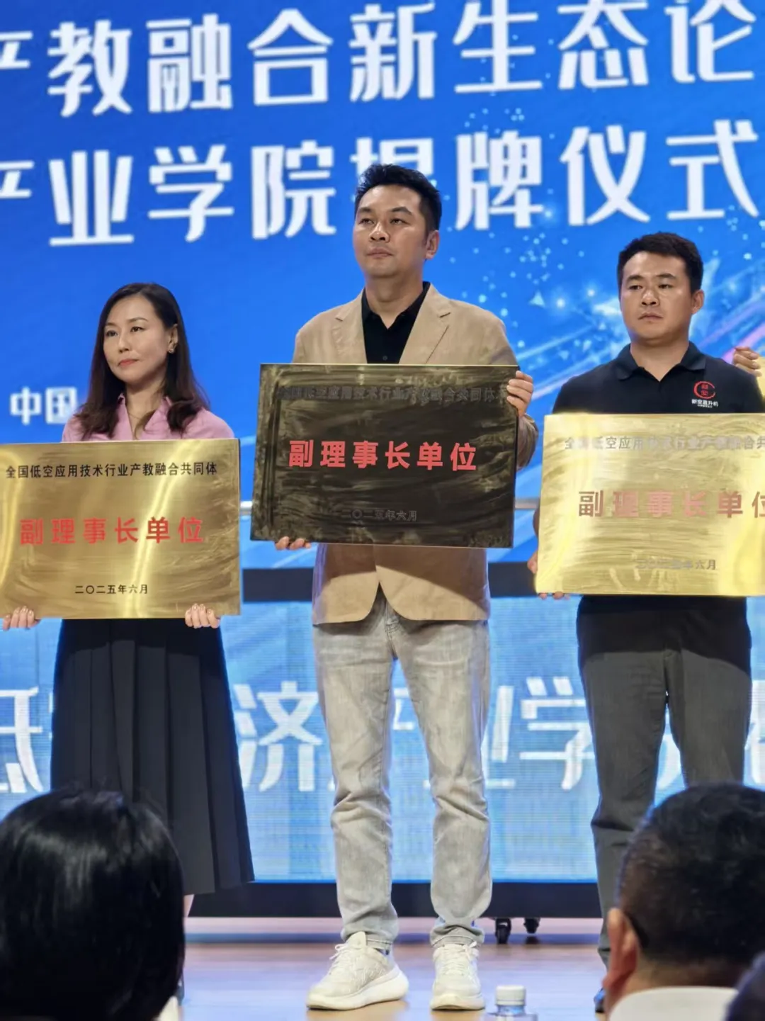 在 “低空经济产业产教融合新生态论坛暨低空经济产业学院揭牌仪式” 环节中,随着推杆的推动,全国低空应用技术行业产教融合共同体正式启动。这一举措意义非凡,它将理论研究与实际应用紧密相连,推动了教育资源与产业需求的深度融合,为低空经济领域培养更多契合市场需求的专业人才奠定了坚实基础。
