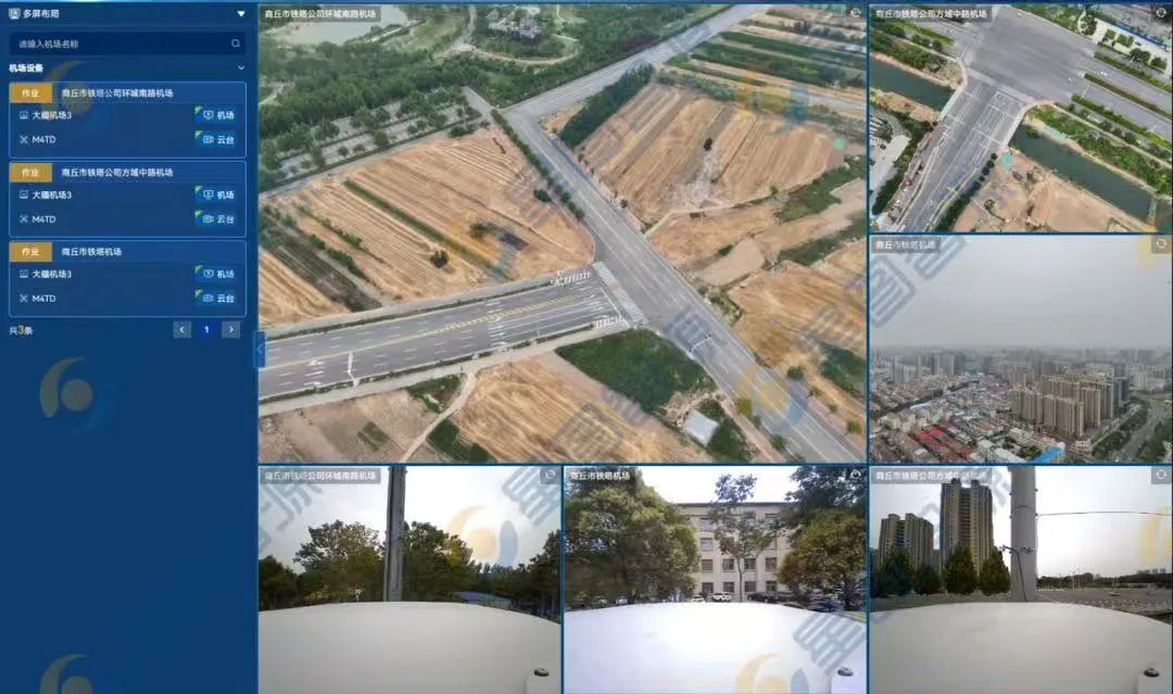 在公安指挥中心,多路无人机画面同步接入多屏监控系统: