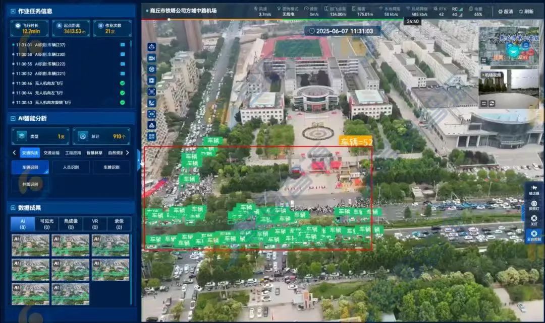 实时直播:无人机高空视角覆盖考场周边,地面交警、指挥员可同步查看现场动态,提升协同效率。
