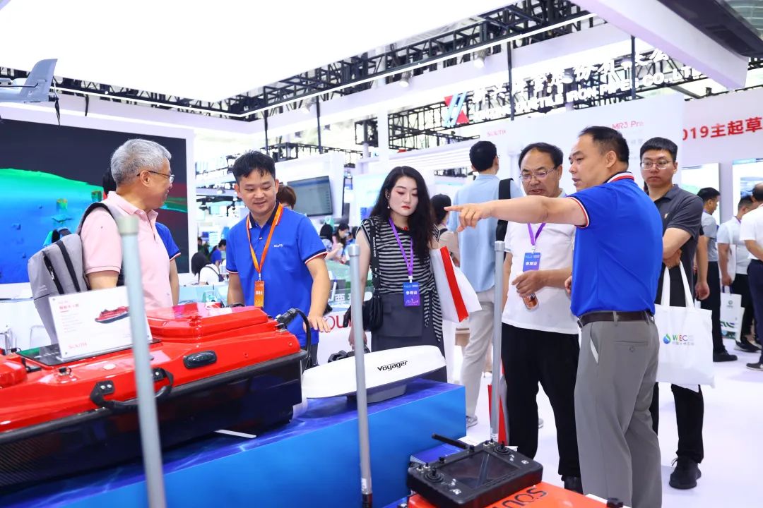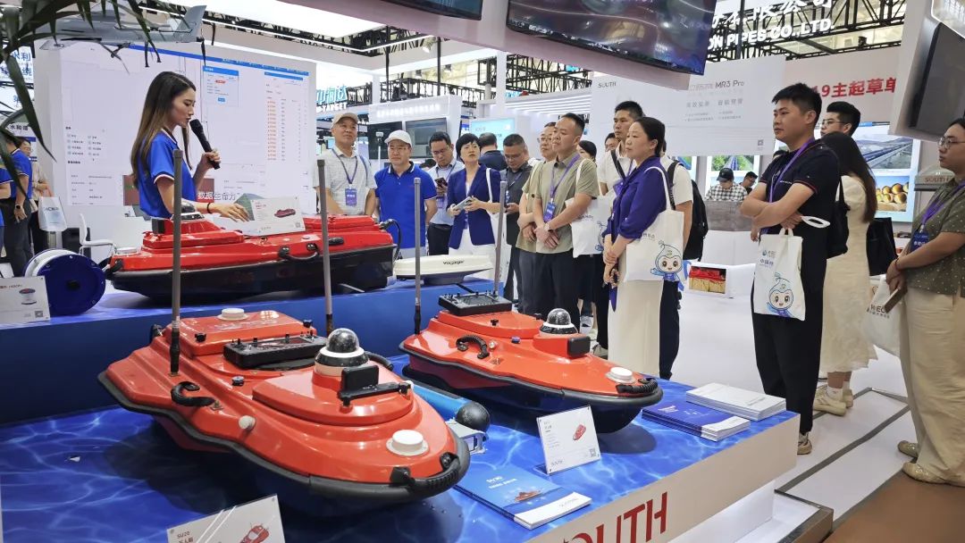 SU30智能无人船也吸引了众多观众的目光。该无人船具有水深覆盖全、水深扫描效率高,复杂水域适应性强等优势。其一体化主控设计、双层船体设计防沉防撞,船底入水口网格保护设计极大提高了防水草、防水面垃圾的能力。同时,它还具备毫米波雷达智能避障、浅水报警、360° 全向视频、自动航行船速调整、低电量自动返航、失联自动返航等实用功能。在实际应用中,借助无人船获取精确的水深数据,可广泛应用于海洋测绘、河道测量、湖泊监测、水下地形探测等水利相关领域,为水利工程建设和水资源管理提供精准的数据基础。