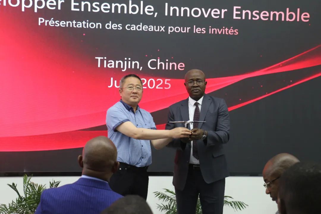 在座谈交流结束后,双方互赠礼物,飞马机器人向刚果(布)区域航空合作研修班赠送了无人机模型等纪念品,刚果(布)区域航空合作研修班则回赠了具有本国特色的礼品,以此表达对彼此的友好情谊与合作期许。