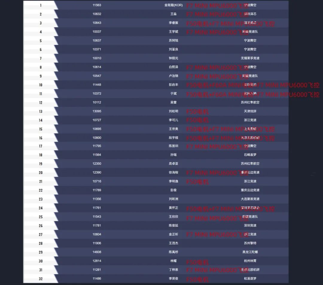 首先为大家介绍无人机竞速赛况,在资格赛、淘汰赛和决赛的层层比拼中,各组别优秀选手脱颖而出,最终荣耀榜单正式揭晓。来自韩国的飞手金珉载五魁首夺冠,王淼、李睿辰分列亚军、季军,王学斌再次杀入四强,展现了宝刀未老的竞技状态。李睿辰、白熙泽、彭启丰分获少年组冠亚季军,李可儿、孙瑶和王欣欣分获女子组冠亚季军。这些新生代飞手用实力证明了中国无人机竞技的未来可期!