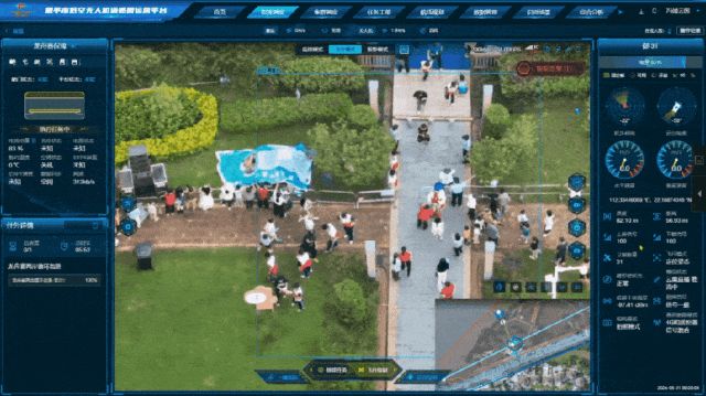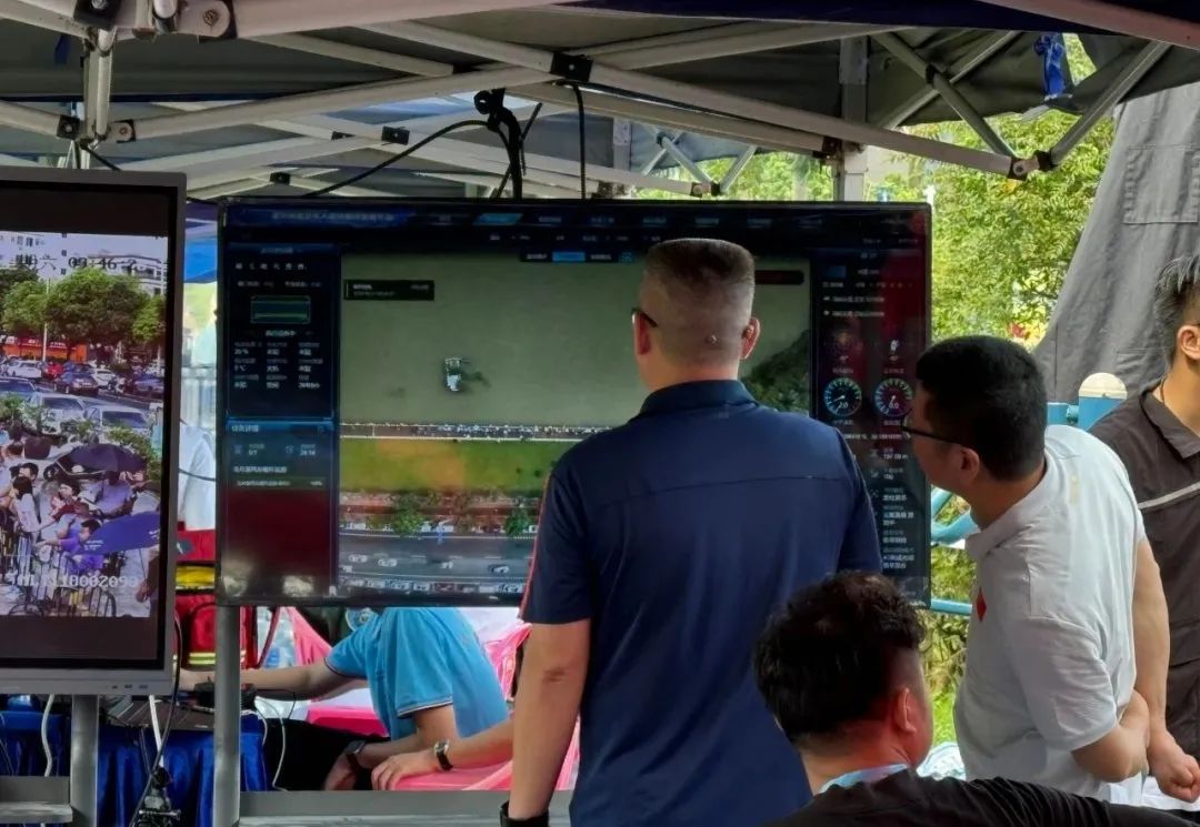 现场工作人员通过“恩平市低空无人机遥感网运营平台”下发任务后,无人机自动起飞,按照在云平台提前预设好的航线,沿河岸线进行低空飞行巡查,并将无人机画面接入现场应急指挥部。无人机进入巡检区域后,自动打开云平台搭载的AI智能识别算法,对区域内的人员、车辆进行分析识别,实时监测潜在风险态势,即时推送告警信息至指挥部,有效保障赛事秩序与安全。