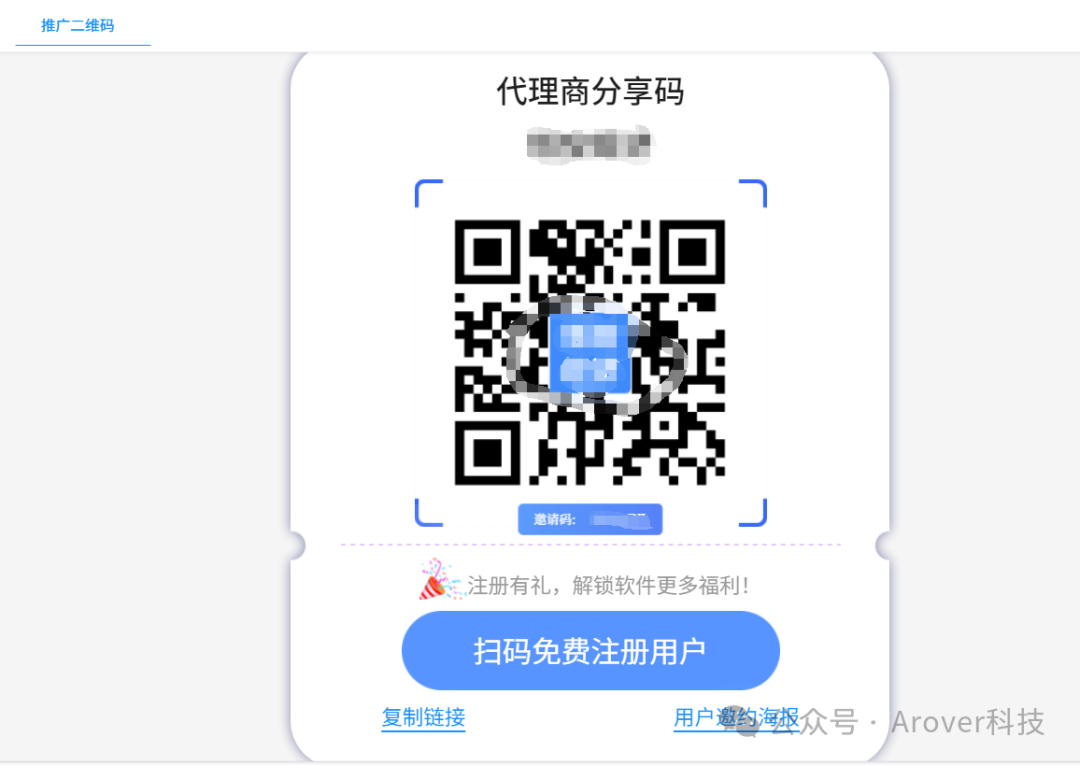 点击用户邀约海报, 即可下载含专属二维码的推广海报.
