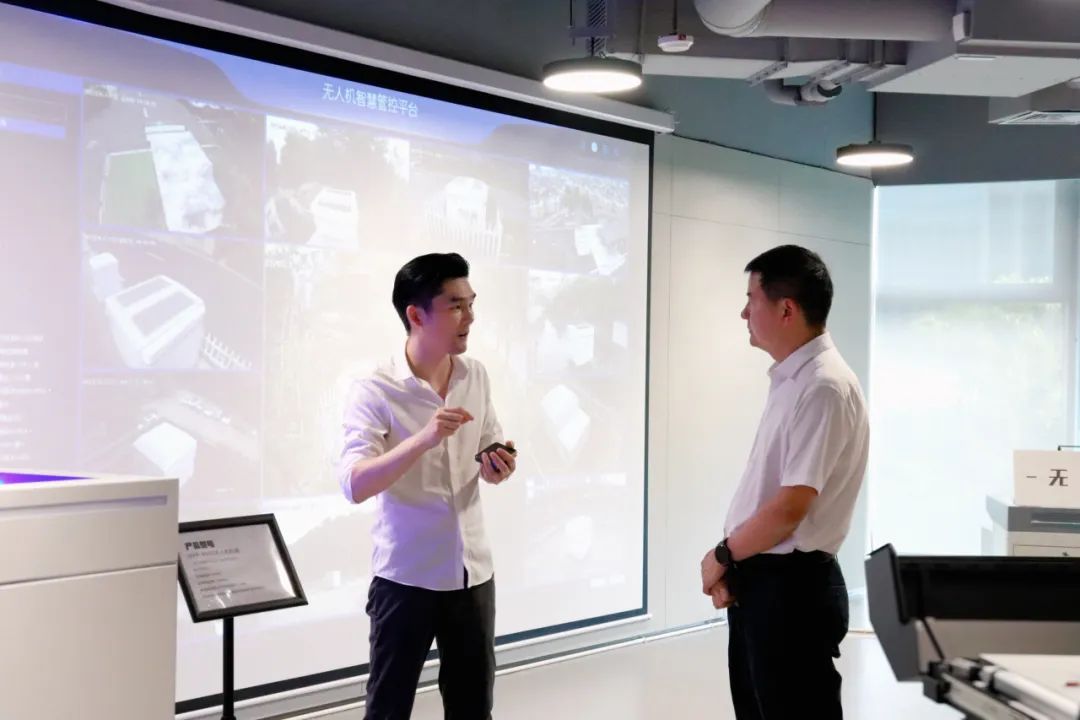 考察团一行深入参观我司无人机管控系统AI研发中心、无人机机场生产基地与产品技术展示区,对昊舜视讯在无人机巡检应用场景中取得的技术成果进行了全面了解。公司研发人员详细介绍了无人机巡检系统在电力、交通、安防等领域的创新应用,展示了其高精度数据采集、AI智能分析处理以及实时监测预警等核心功能。这些成果让考察团成员眼前一亮,纷纷表示赞叹。
