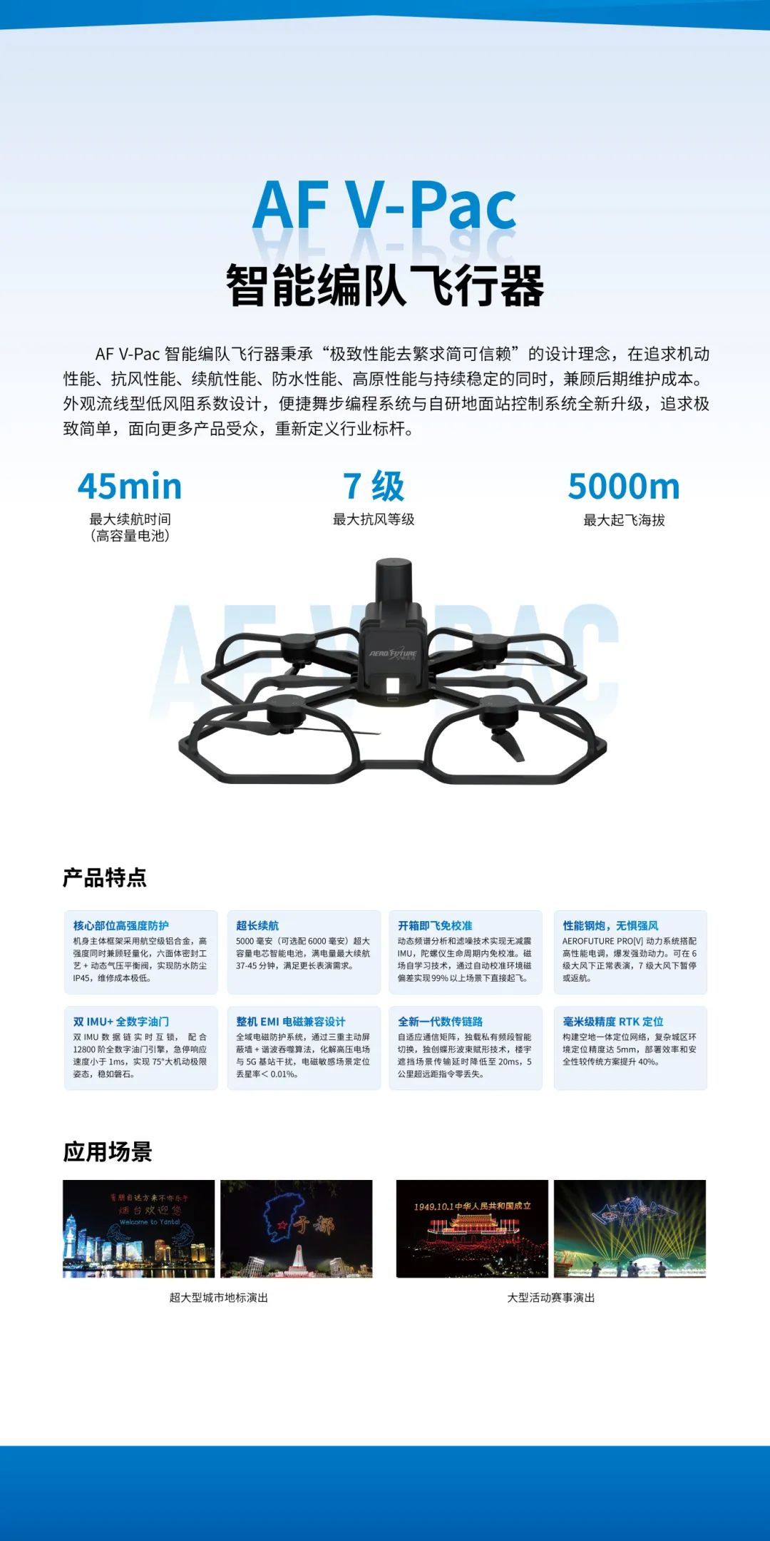 关于空中未来集团有限公司进入企业商铺空中未来( Aero Future )成立于2016年,总部位于南昌市高新区,在北京、深圳、东莞、九江等地有子公司。我们领航低空经济发展,筑基航空产业集群,致力于提供领先的有人机&无人机应用解决方案与定制化飞行服务。以推动航空应用在公共安全、智慧城市、娱乐媒体、生态环境、应急救援、建筑工程、教育培训、私人航空娱乐消费等不同领域中的深度应用为己任,帮助用户解决问题、创造价值。 空中未来现拥有数十项航空器相关专利及软件著作权,是国家高新技术企业、AAA级诚信企业,于2021年获得“最大的由无人机形成的光源影像”吉尼斯世界纪录证书(有效认证无人机编队飞行数量5184架)。 我们的使命与愿景是 “探索低空领域前沿应用,革新行业发展〞。公司依托自身优勢,携手全球合作伙伴,聚焦用户需求,不断创新“行业+航空” 解决方案,引领行业革新作业方式。
