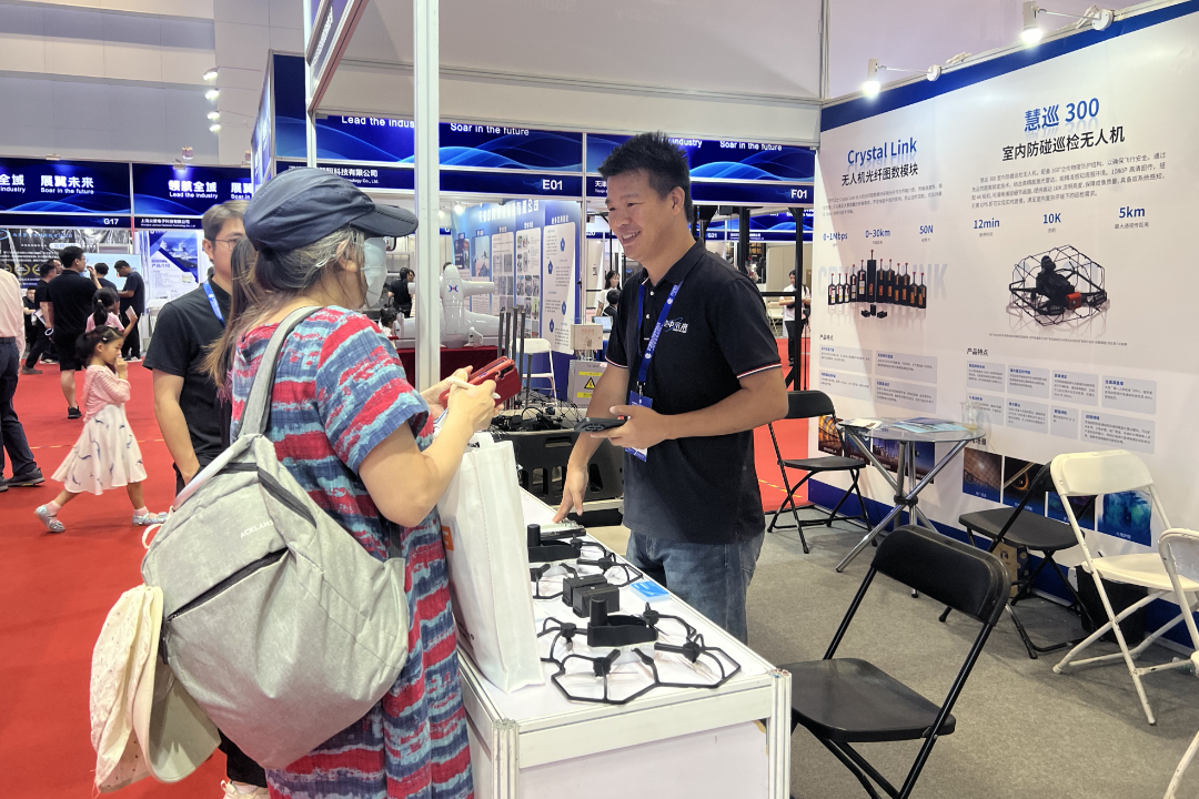 展会期间,空中未来展位人潮涌动,成为现场最具人气的焦点区域之一。此次展出的Crystal Link无人机光纤图数模块、慧巡300室内防碰巡检无人机、无人驾驶航空器报文解析站、AG-30灭火无人机、V-pac等产品,吸引了来自全球的专业观众、行业专家及潜在合作伙伴的目光。
