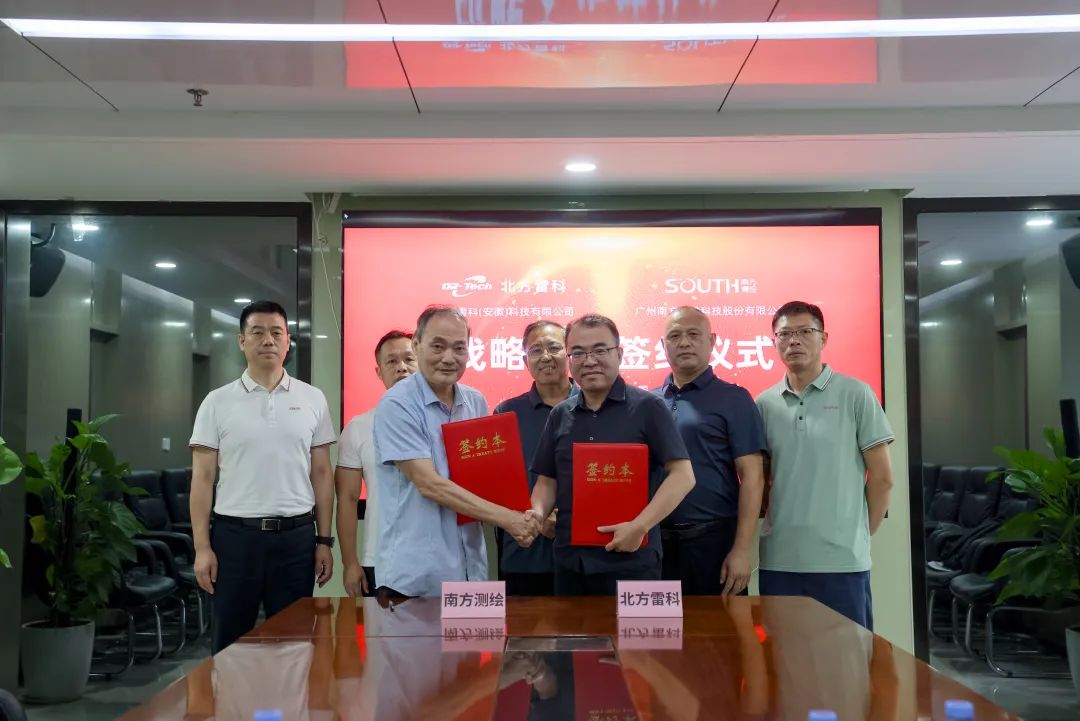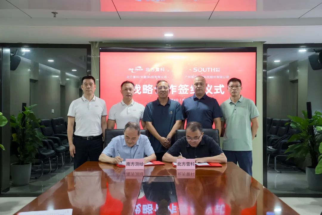 近日,北方雷科(安徽)科技有限公司(以下简称“北方雷科”)与南方测绘战略合作协议签约仪式在南方测绘集团总部举行。北方雷科董事长李传军,北方雷科产业事业部常务副总经理李勇到访集团总部,南方测绘集团创始人、董事长马超,测绘产品事业部总经理杨艺,项目应用事业部总经理邓万军,集团安徽分公司总经理吴兆龙等接待了来宾。