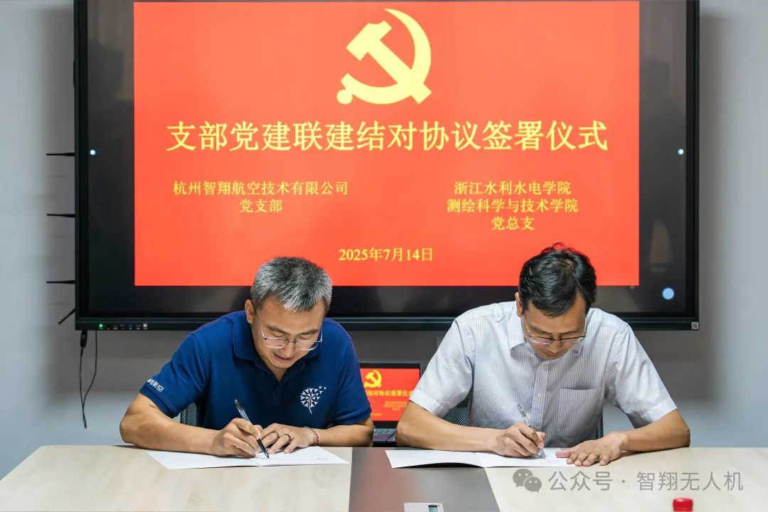 2025年7月14日,水利水电学院测绘科学与技术学院副院长涂乾光、教师阮晓光、李爱霞一行莅临智翔航空技术有限公司(以下简称“智翔航空”)考察交流,并举行产学研合作签约仪式。