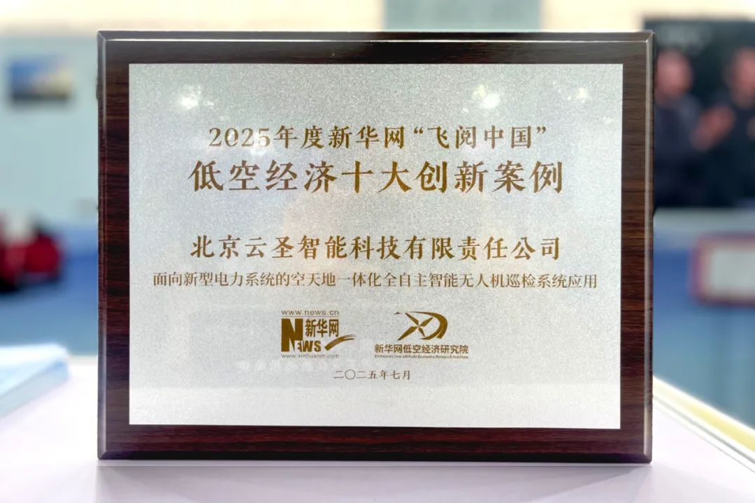 博览会开幕式上,2025新华网“飞阅中国”低空经济创新应用案例发布并进行授牌,由云圣智能申报的“面向新型电力系统的空天地一体化全自主智能无人机巡检系统应用”荣膺十大创新企业案例。